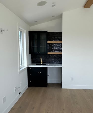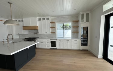 "Discover Master Construction's latest architectural gem in Redondo Beach. This modern masterpiece boasts pristine white interiors that bathe the space in natural light, creating an atmosphere of serene sophistication. Sleek black accents, from lighting to hardware, inject a bold contrast, highlighting the home's clean lines and contemporary design."
