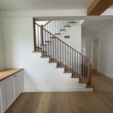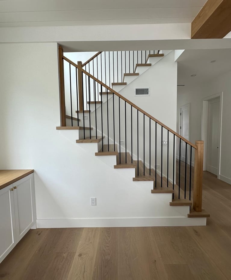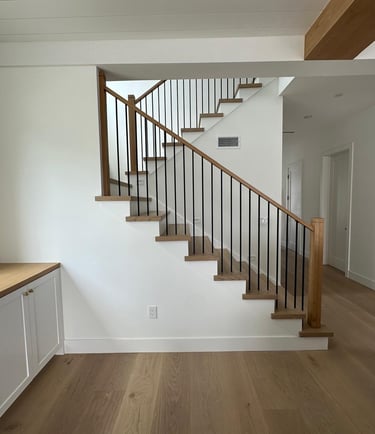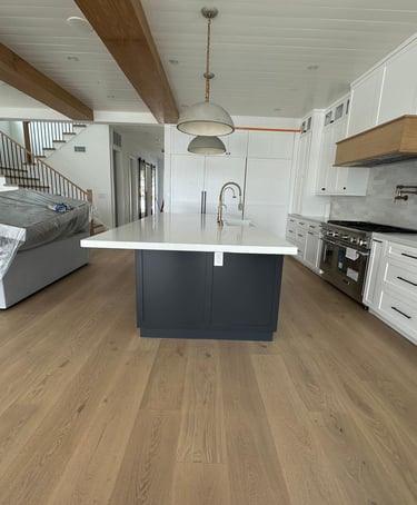 The rich hardwood floors bring warmth and character to the home's immaculate white spaces. The natural beauty of the wood provides a stunning contrast, adding both depth and dimension. These flawlessly finished floors showcase the home's luxurious allure and highlight Master Construction's commitment to superior craftsmanship.